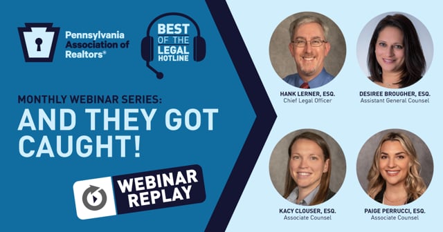 Learn about some recent disciplinary decisions by the Pennsylvania State Real Estate Commission and how to avoid becoming the subject of future webinars. Listen as PAR’s legal team highlights some recent cases.